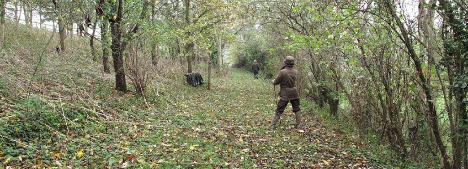 Day out Beating on Eastwood Farm Shoot Somerset October 30, 2014 Gamekeeping Ollie and Dawn from Collins Nets spent the day out beating on Eastwood Farm Shoot in Somerset for Jane & Steve on 29th October 2014. It was a fantastic day out in the beautiful woodland and valleys in Yarlington, Somerset. It was a foggy and damp day but that really didn’t matter! The day started with a lovely warm welcome from Jane and Steve with bacon rolls and coffee at the Farm House where we met the other beaters and pickers up. At 10am we set out on the first drive where we were positioned near the Partridge Pen. Not a lot of action here for the Guns, but the Second Drive through the woodland pushed quite a few Pheasants out, flying high for the Guns in the fields below. Here is a few photographs from the morning: We headed back to the Farm House for nibbles and port at midday to keep us going – an unexpected treat! All the Beaters were soon heading out across the fields to Drive more pheasants out through the woodland for the Guns on Pegs. The Collins Nets Orange Beaters Flags really stood out and made a great noise. The Beaters and Pickers up were all impressed, so we left some behind for Jane. Some afternoon photos here: At the end of the day the shoot counter read 190 with a total of 45 birds in the bag. To finish off the day, a drink for all at the local pub, and a proper nice meal too. Venison Pie and then Apple Strudel was just perfect with a pint or two! Sadly Jane passed away in May 2017. We will always remember the great days we had beating with Jane and her team. Further reading « Time to Sow some Cover Crops! July 1, 2014 Country Clothing now in stock! » December 10, 2014