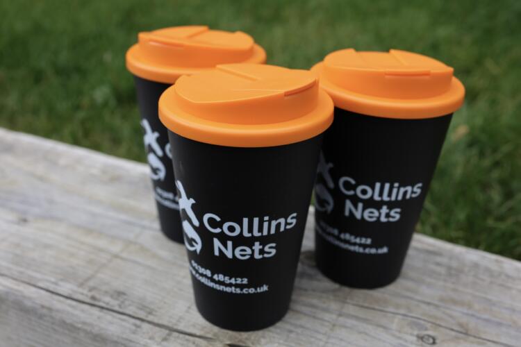 The black, double-walled thermal mug is completely recycled, whilst the Orange colour lid is made from recyclable plastic.