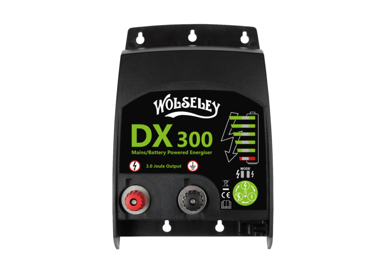 The DX300 is a dual powered electric fencer. It can be powered from both a 12V battery and a mains power supply.