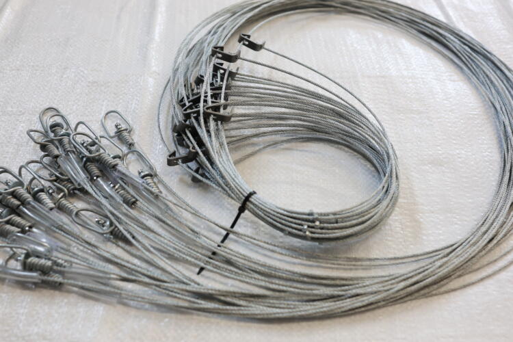 These snares are constructed from 2.0mm diam, 7×7-strand stainless steel wire rope, min. breaking load = 240kg (2.35kN)