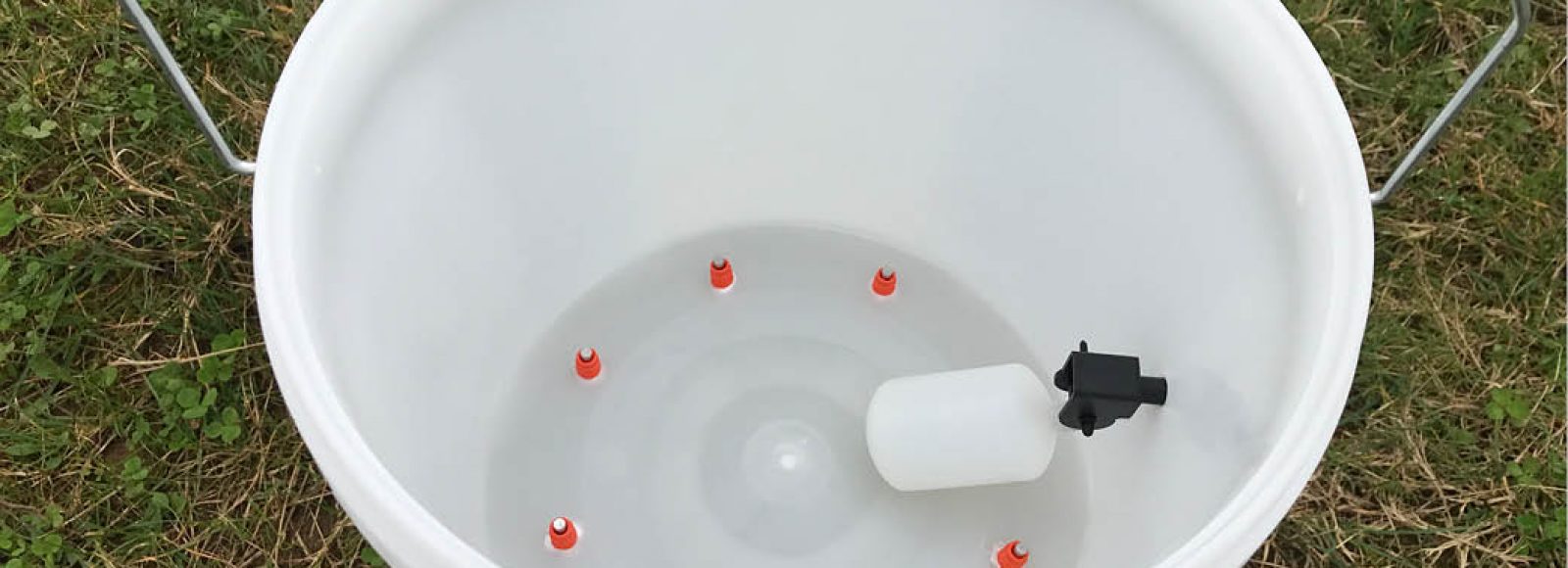 This simple drinker system uses a high quality 10 ltr capacity bucket with lid, metal handle, a complete ball valve and eight screw in type 360 degree nipples.